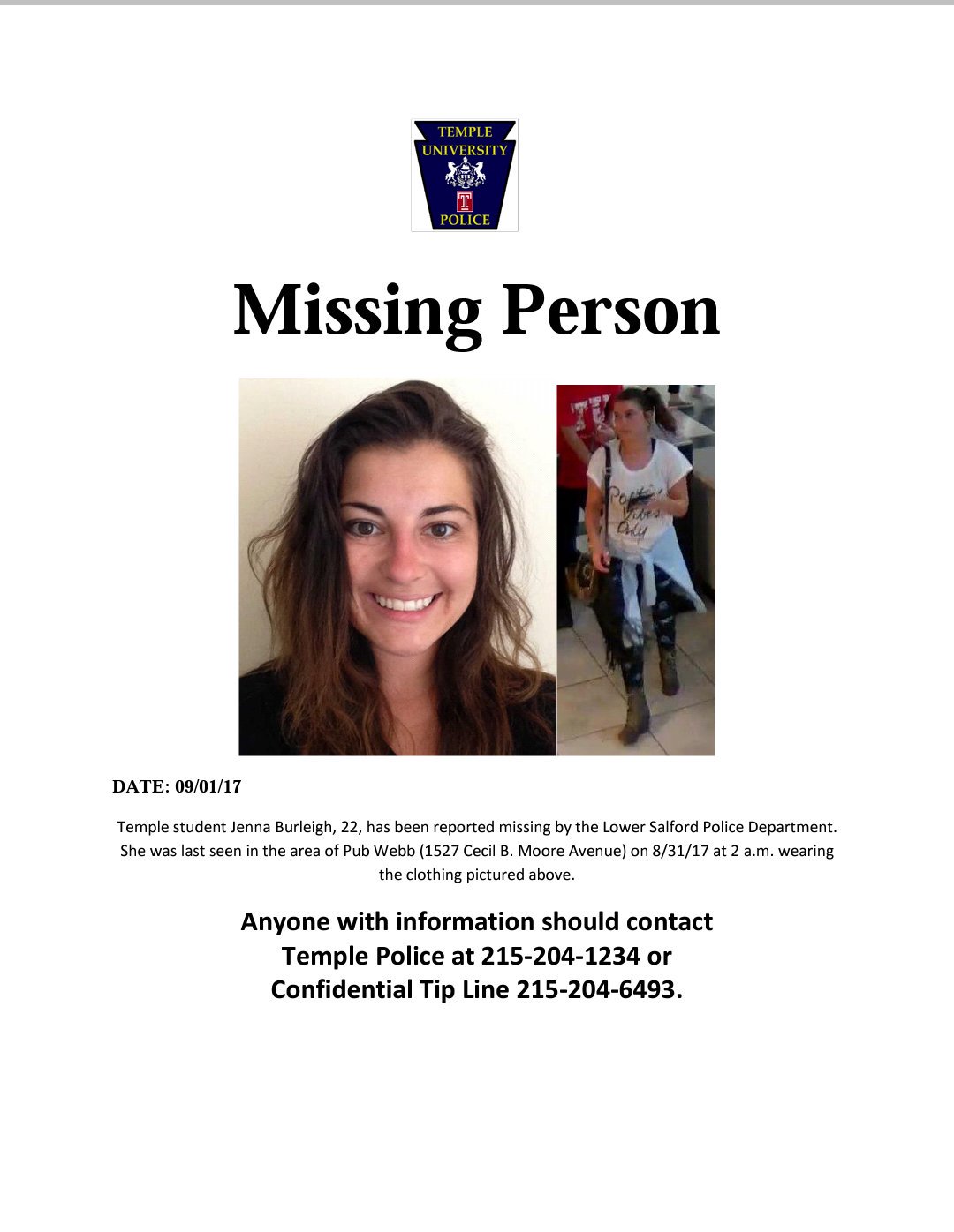 body, confirmed to be missing college student Jenna Burleigh, 22.